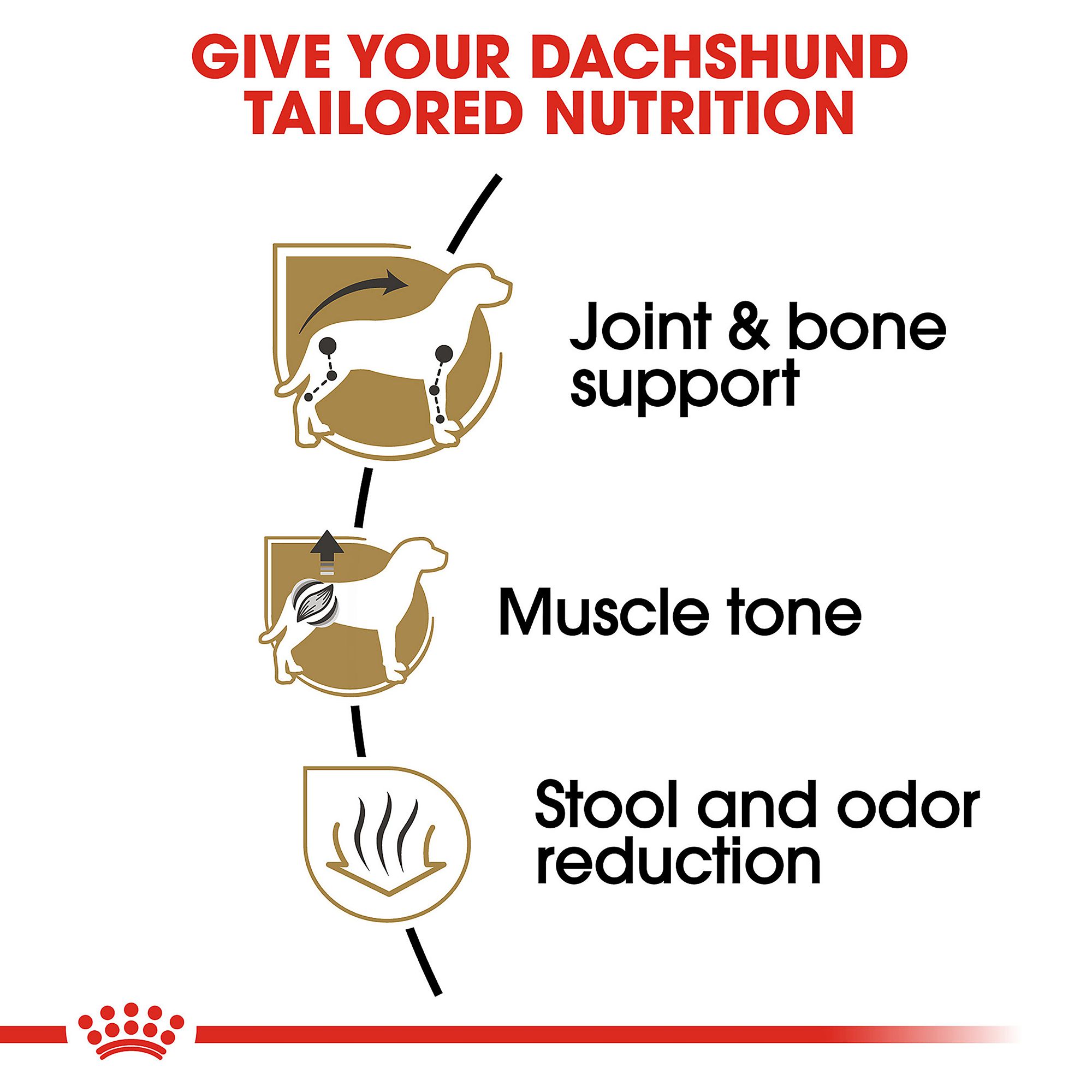 The following is some general advice on feeding and caring for mini-dachshunds. ROYAL CANIN Dachshund Puppy contains a complex of antioxidants such as vitamin E that help to support your puppys natural defences. This table shows the Royal.
